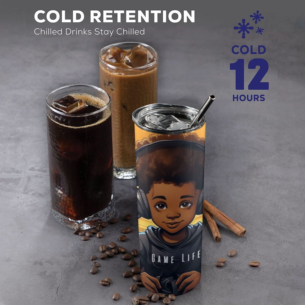 Game Life Tall Skinny Tumbler with Lid and Straw