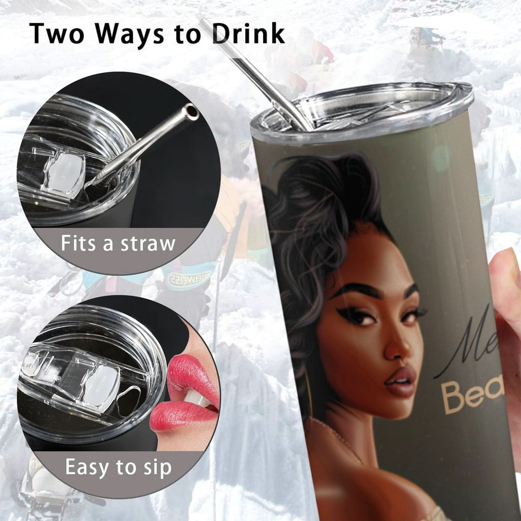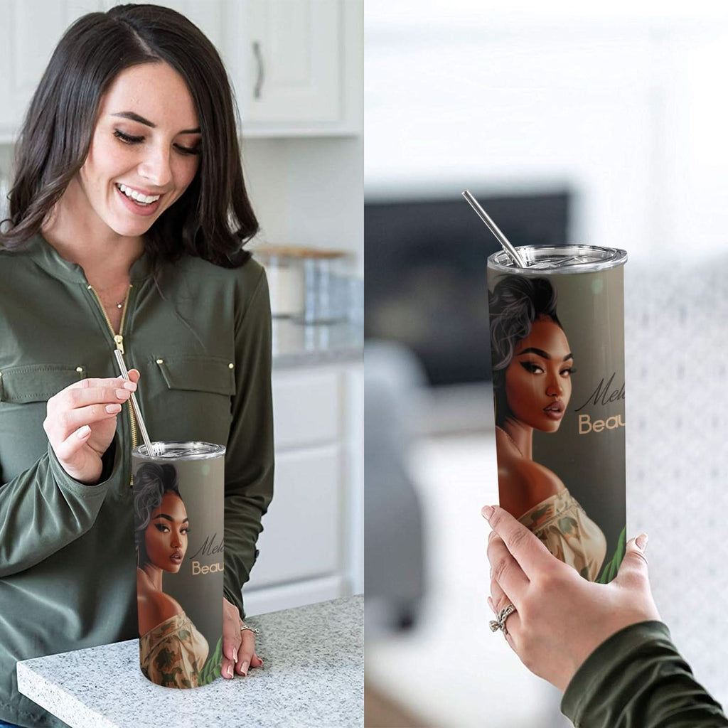 Melanin Beauty 20oz Tall Skinny Tumbler with Lid and Straw
