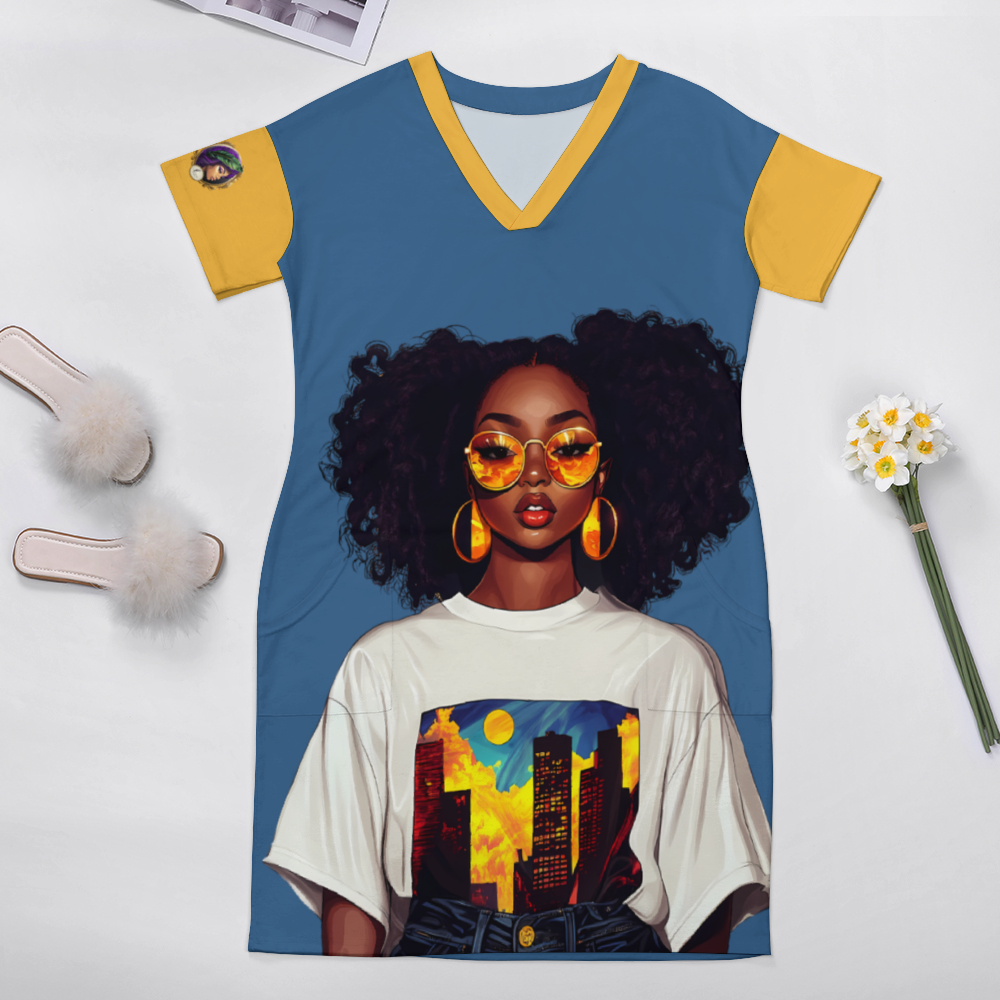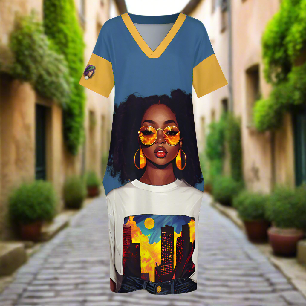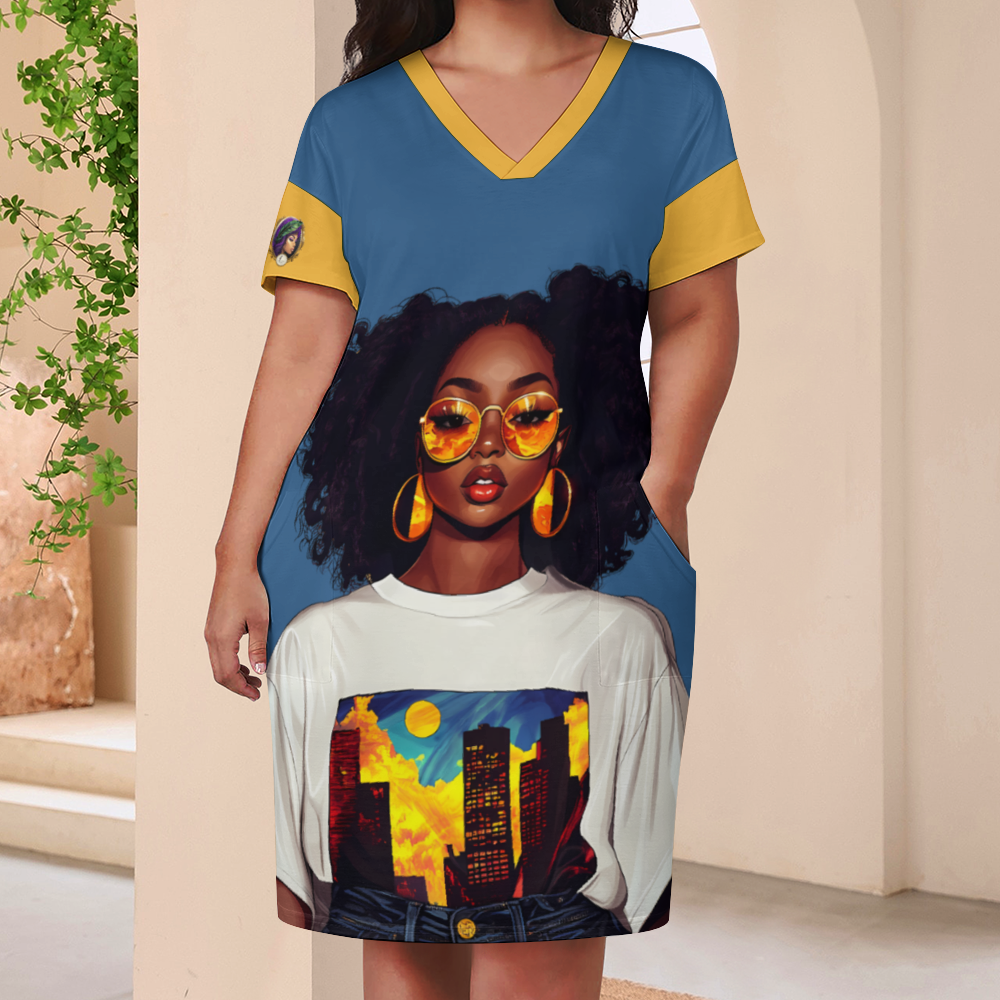 NeoSoul Vibe Women's V-neck Loose Dress with Pockets