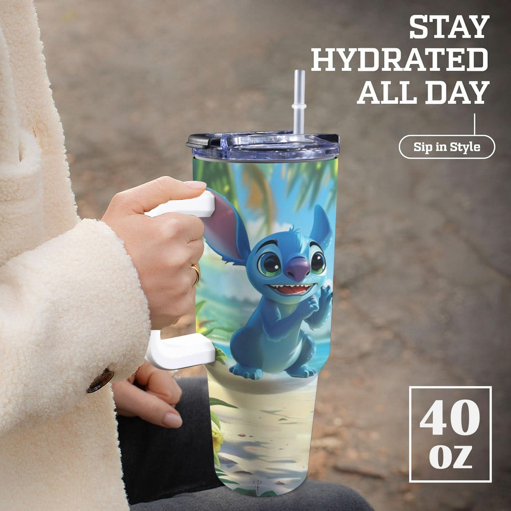 But it's not just about the looks – this tumbler is as functional as it is fabulous. With its generous 40oz capacity, it's perfect for keeping your favorite beverages ice-cold or piping hot for hours on end. Plus, the convenient handle ensures that you can take your tumbler with you wherever you go, whether you're headed to the beach, the pool, or just lounging at home.