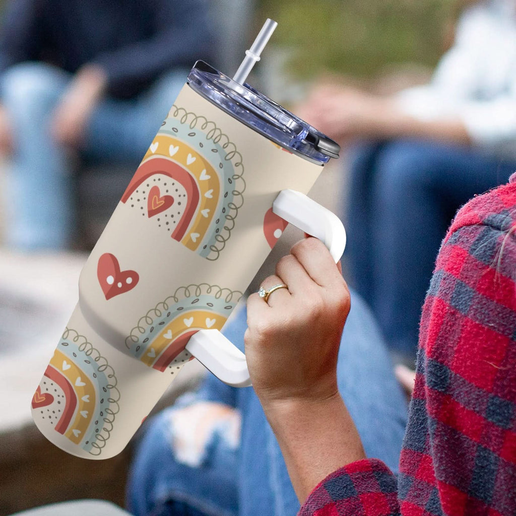 Introducing the Wanderlust Sipper 40oz Tumbler with Handle, the perfect blend of boho chic and functionality for your adventurous spirit. Embrace the bohemian vibes as you stay hydrated in style on your wanderings.