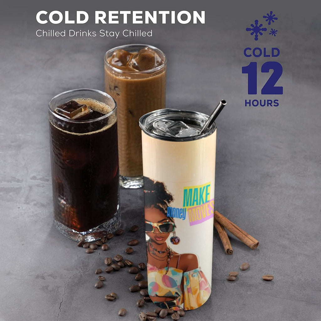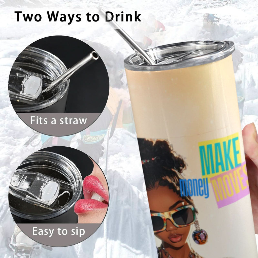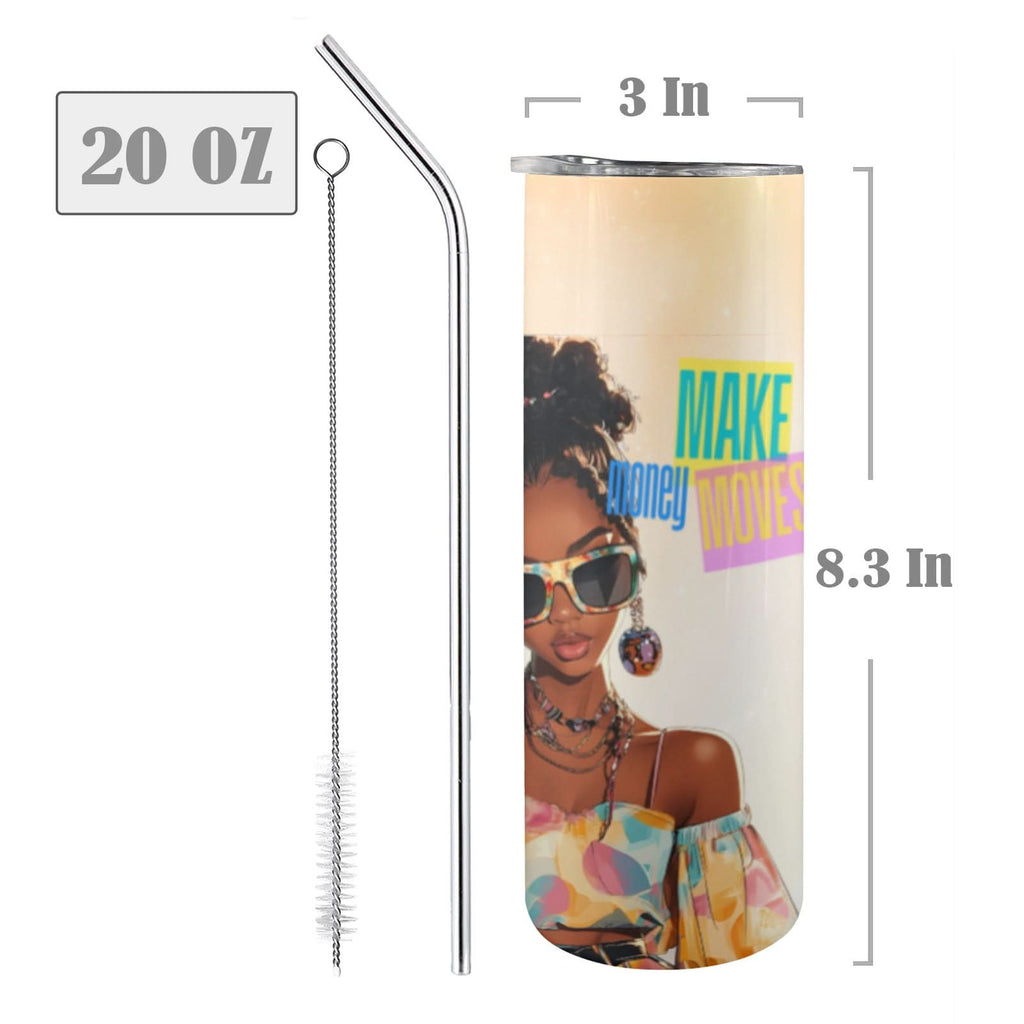 Make Money Moves Tumbler 20oz Tall Skinny Tumbler with Lid and Straw