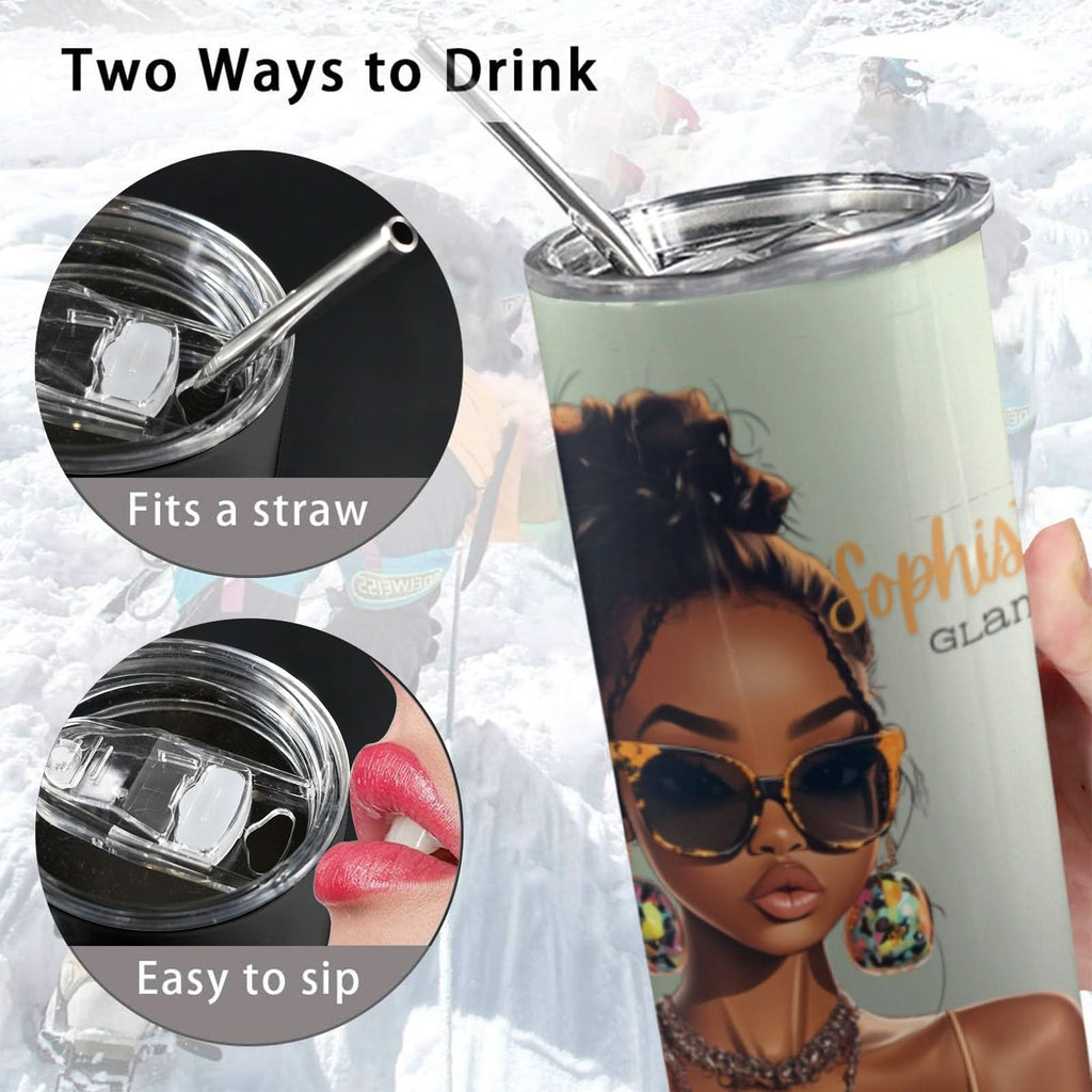Sophisticated Glamour Tumbler 20oz Tall Skinny Tumbler with Lid and Straw