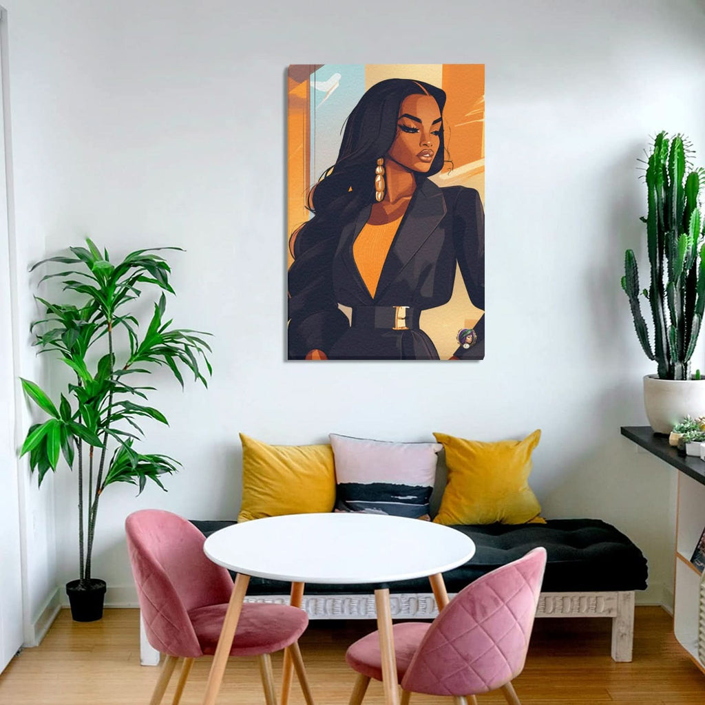Command the room with confidence and radiant energy. The Sunshine in the Boardroom framed canvas print (20"x30") brings bold beauty and CEO-level vibes to your space. Featuring a powerful Black woman glowing in golden tones, this artwork celebrates leadership, style, and unapologetic presence.