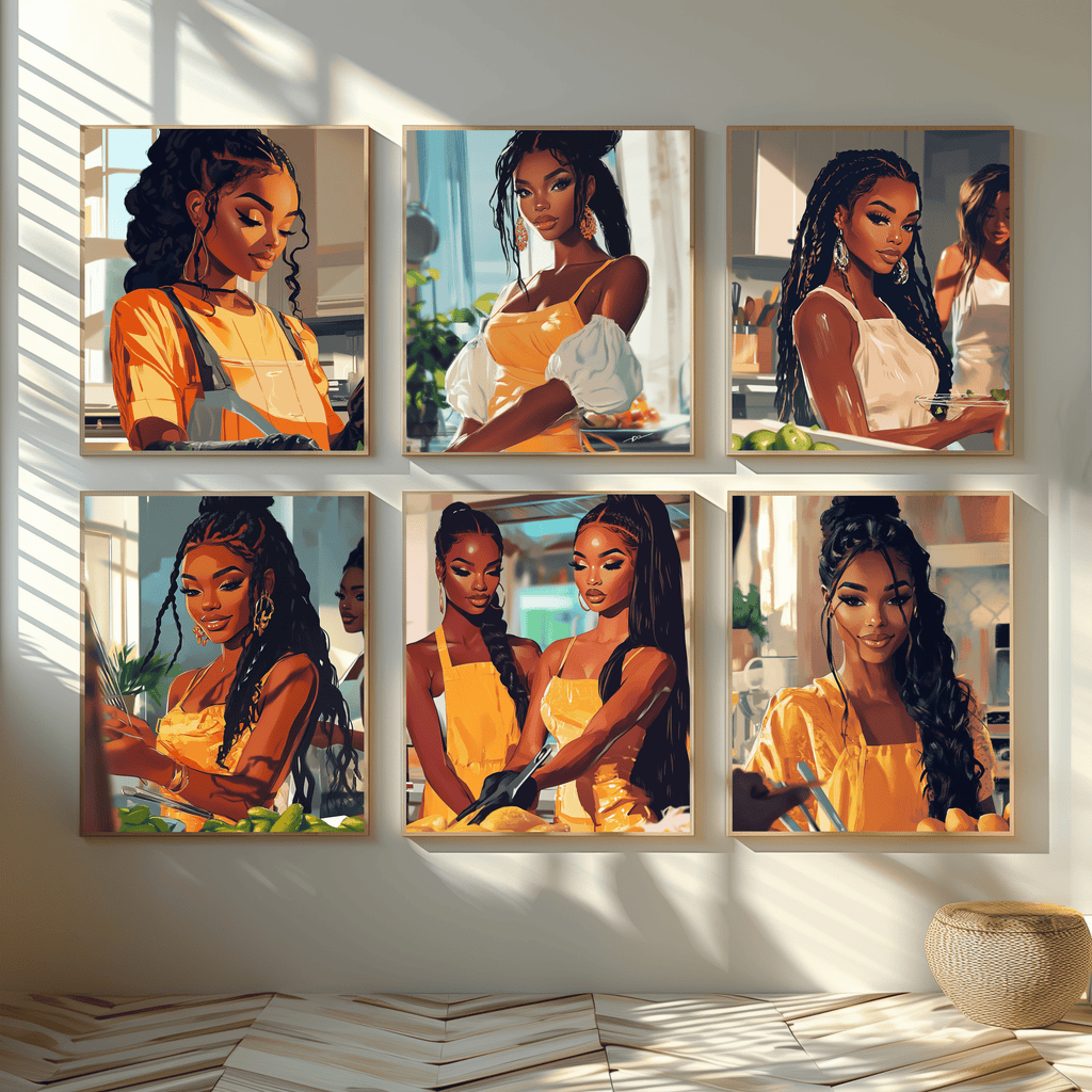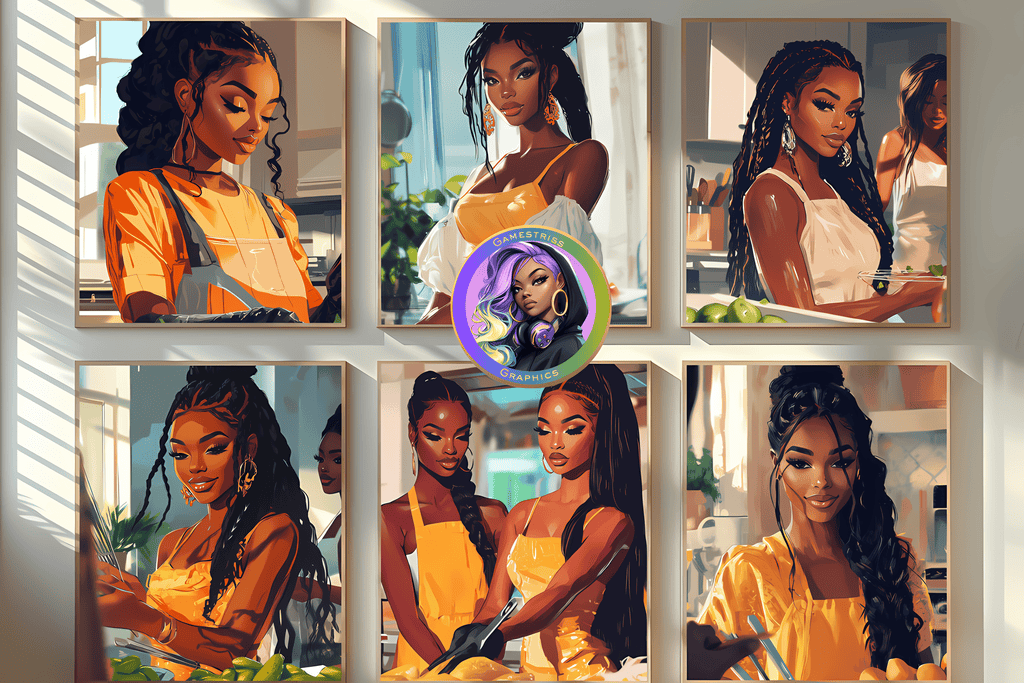 Celebrate beauty, confidence, and creativity in the kitchen with the Black Girl Aesthetic: Let Her Cook digital art collection. This luxurious set features high-resolution illustrations of elegant Black women in modern kitchen scenes, blending self-expression and style with a warm, aesthetic glow. Perfect for creators who love digital art that radiates empowerment, confidence, and unapologetic femininity.