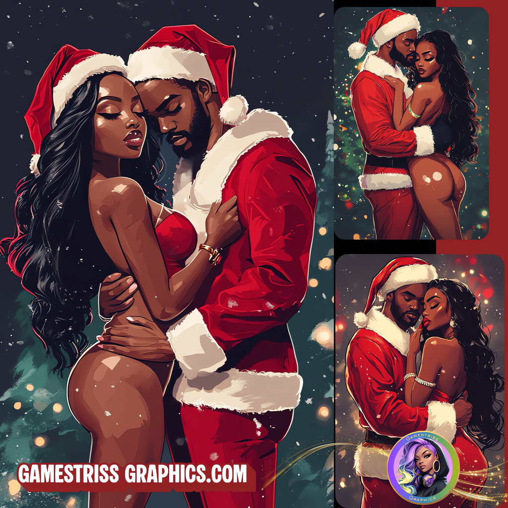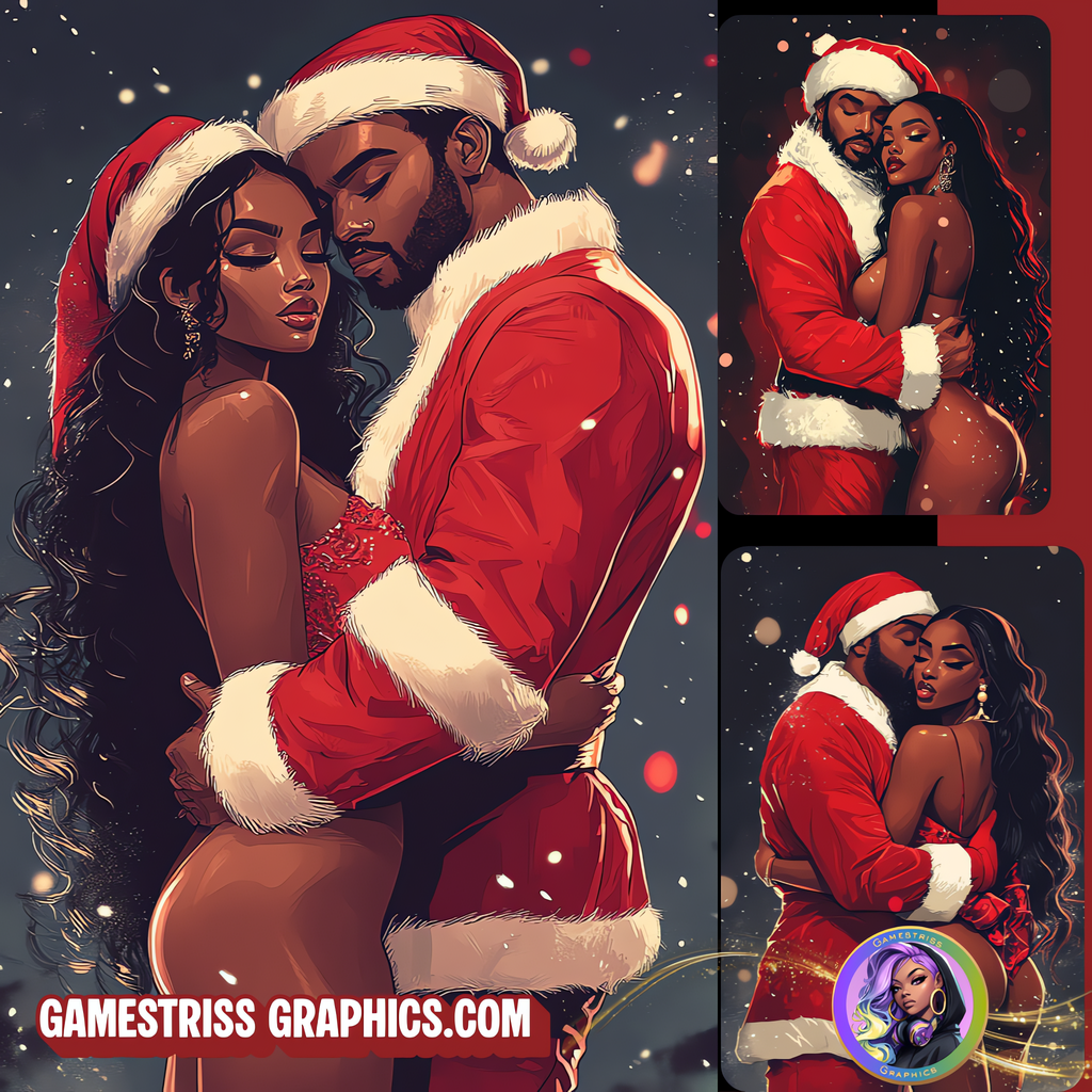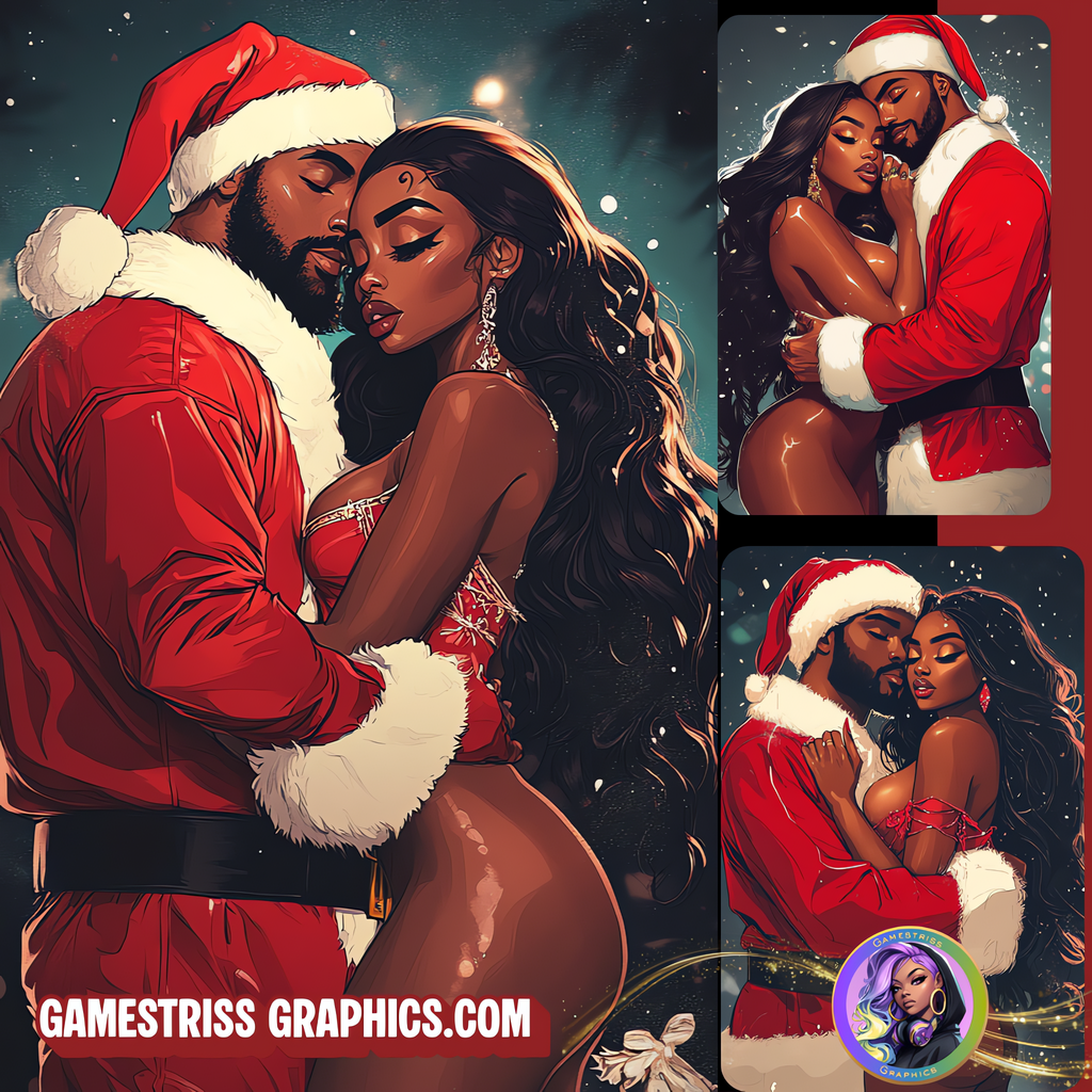 Celebrate the sensual side of the holidays with Black Santa Passion, a luxurious digital art collection that captures the magic of intimacy, confidence, and Black love. These stunning, high-resolution illustrations feature beautiful Black women embracing their Black Santa — a moment of passion, power, and gift-giving allure where the present itself is desire.