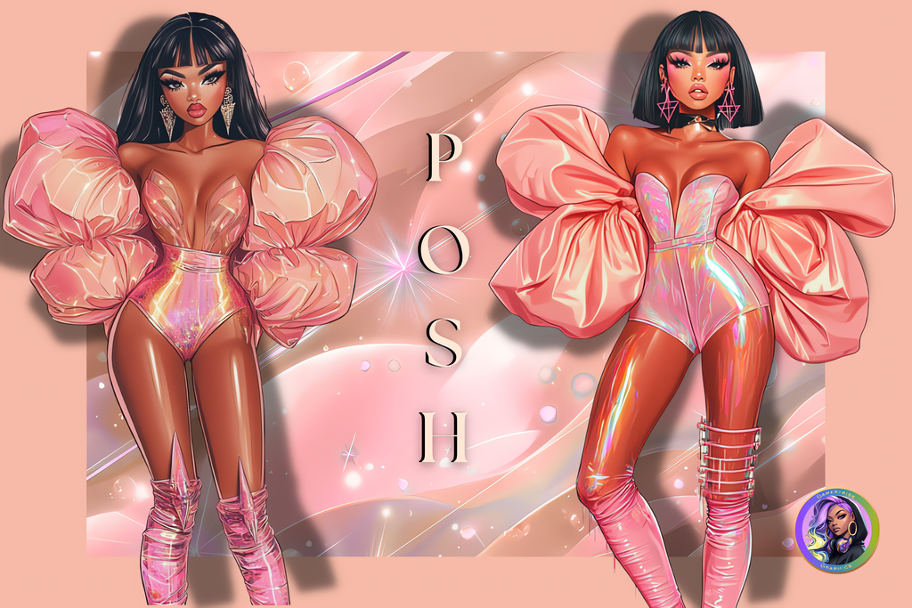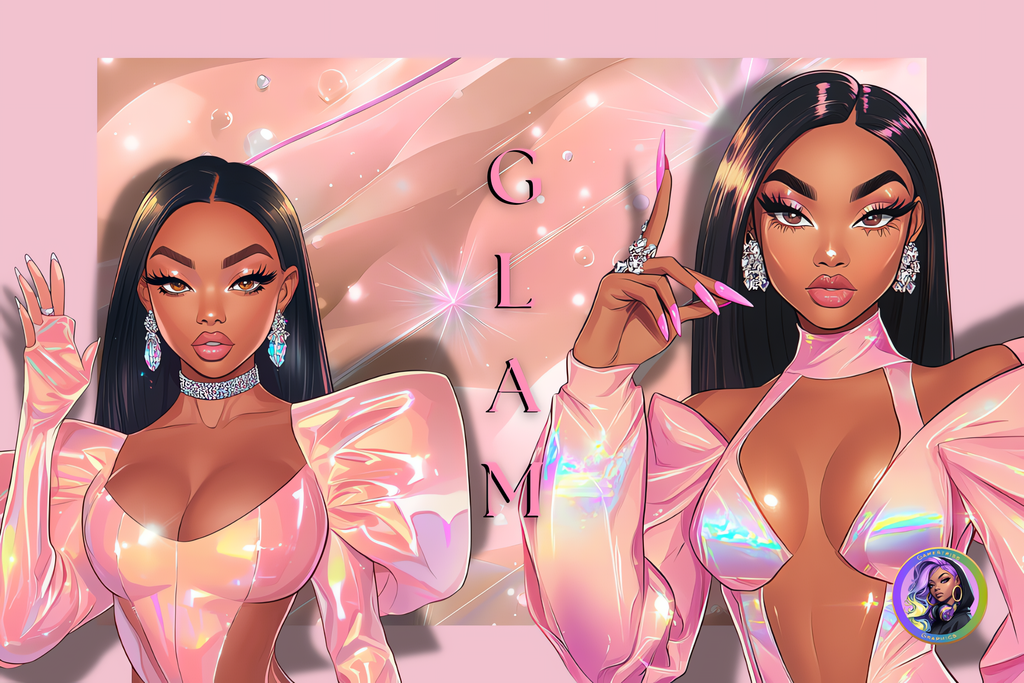 Dive into the dazzling world of the Bubblegum Pink Editorial digital bundle! This playful collection showcases fabulous illustrated fashionistas rocking holographic pink outfits with sass and sparkle. Each glamorous character radiates confidence with their high-gloss finish, dramatic poses, and eye-catching details. Ideal for spicing up your creative projects—whether you're designing social media content, t-shirts, journals, stickers, or branding materials.