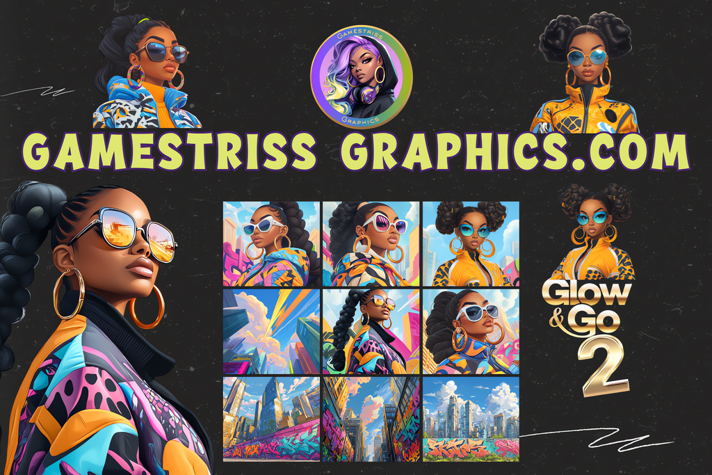 Step into bold luxury and unapologetic confidence with the Glow & Go 2 Digital Art Collection. This stunning bundle includes 10 high-resolution PNG files designed to elevate your creative projects with fashion-forward energy and modern glam. Featuring 5 unique character illustrations and 5 separate background images, this collection delivers everything you need to create impactful designs with an urban-chic aesthetic.