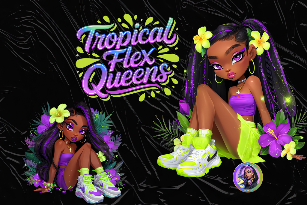 Infuse your designs with vibrant island charm using the Tropical Flex Queens Digital Art Bundle from Gamestriss Graphics.