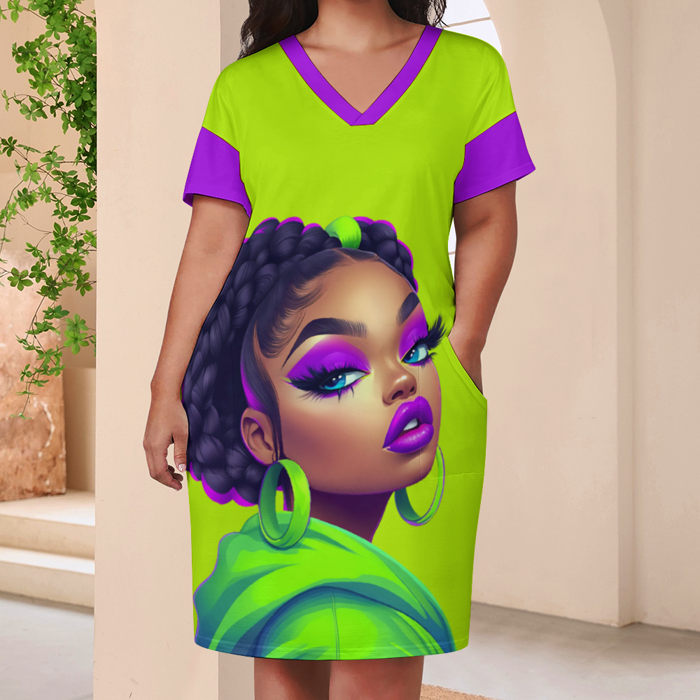 A sexy v-neck dress with two pockets is a personalized dress tailored to individual designs. It allows the wearer to design the style, resulting in a dress that is truly unique and one-of-a-kind. When you wear it to any occasion, it will make you look very charming and unique.