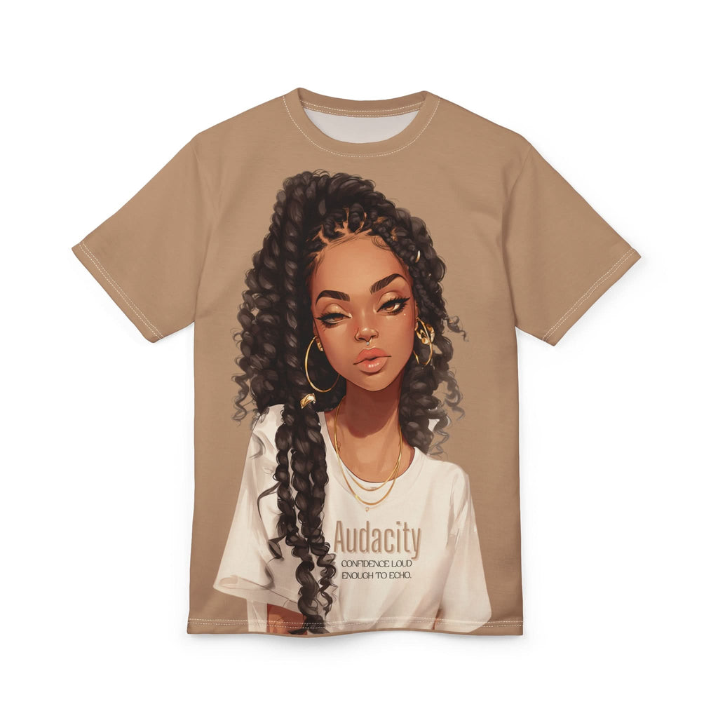Empowered Audacity Tee, Graphic T-Shirt, Unisex AOP Tee, Inspirational Apparel, Gift for Her, Self-Love Clothing