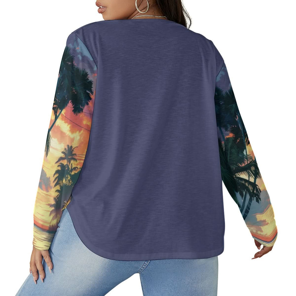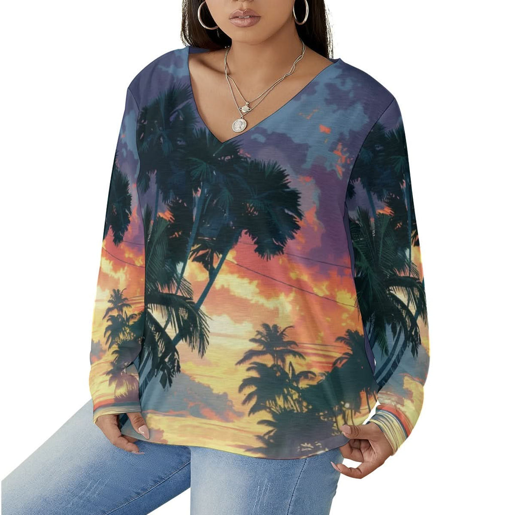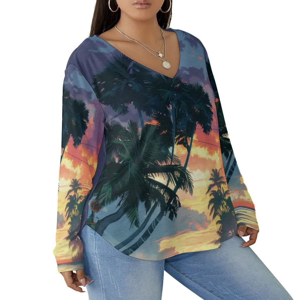 Tropical Vibes Women's V-neck T-shirt With Curved Hem (Plus Size)