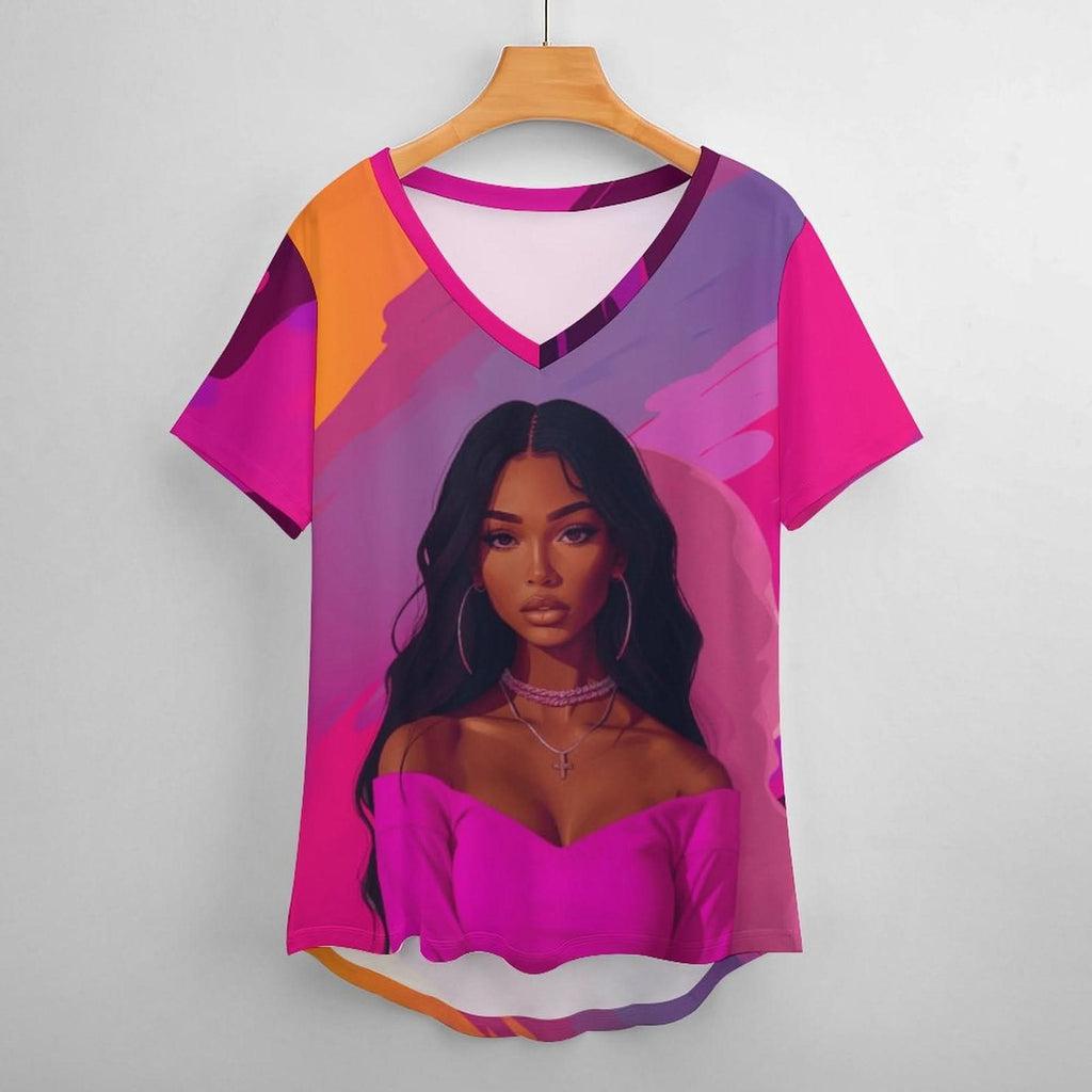 Fuchsia Finesse Women's V-Neck T-Shirt