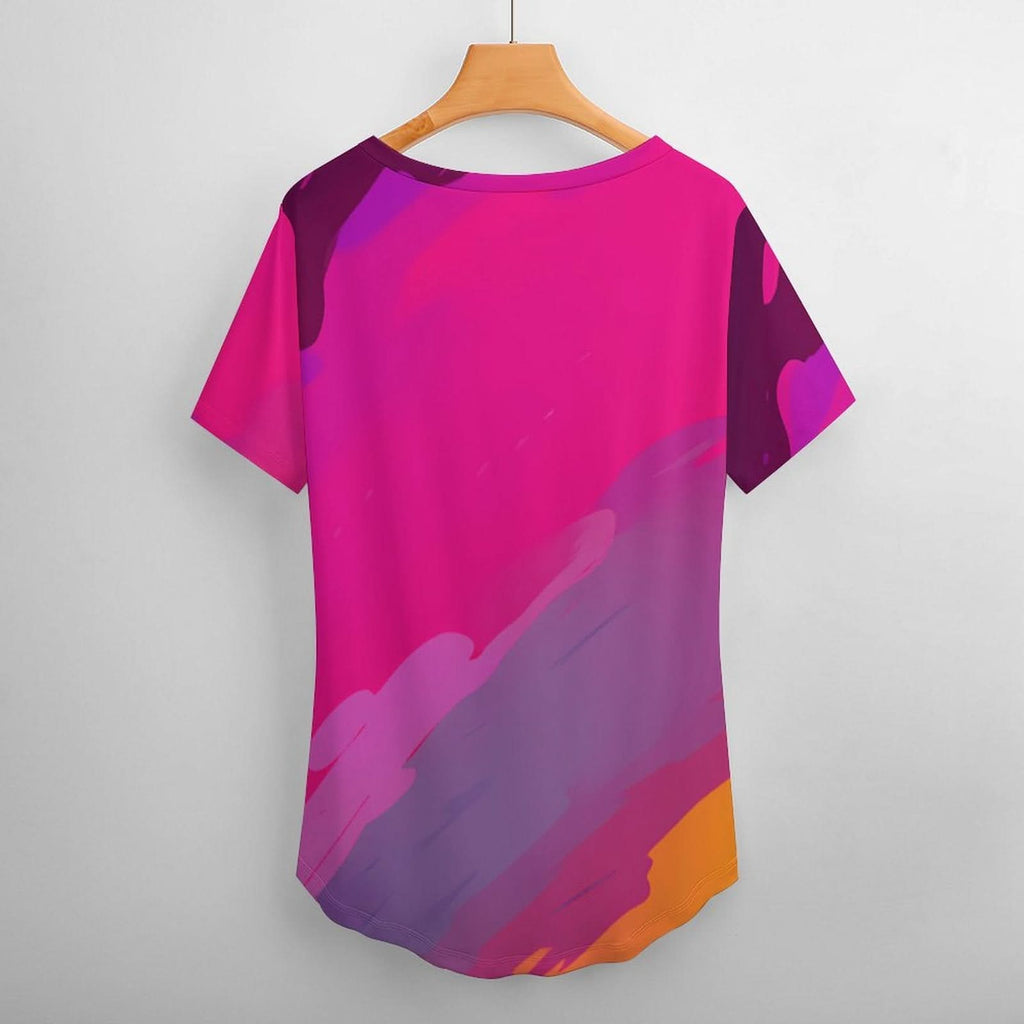 Made from premium, lightweight fabric, the Fuchsia Finesse V-Neck T-Shirt ensures breathability and softness against your skin. Its short sleeves and relaxed fit provide ease of movement, making it ideal for various summer activities.