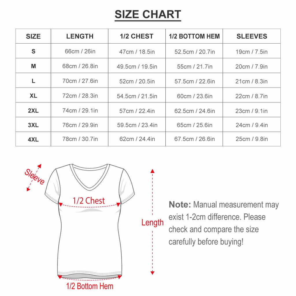 - Sizes: S, M, L, XL, 2XL, 3XL, 4XL. Calculate your size from the measurement chart below please.