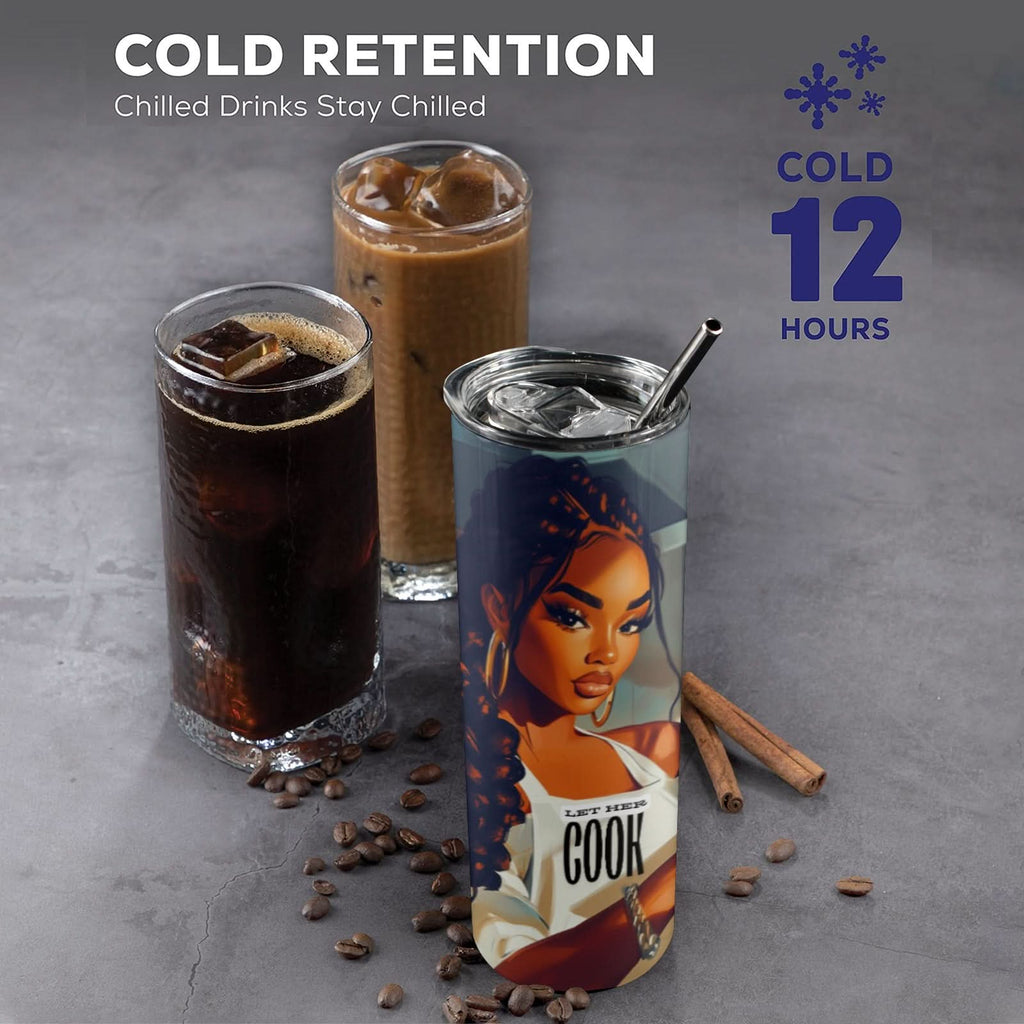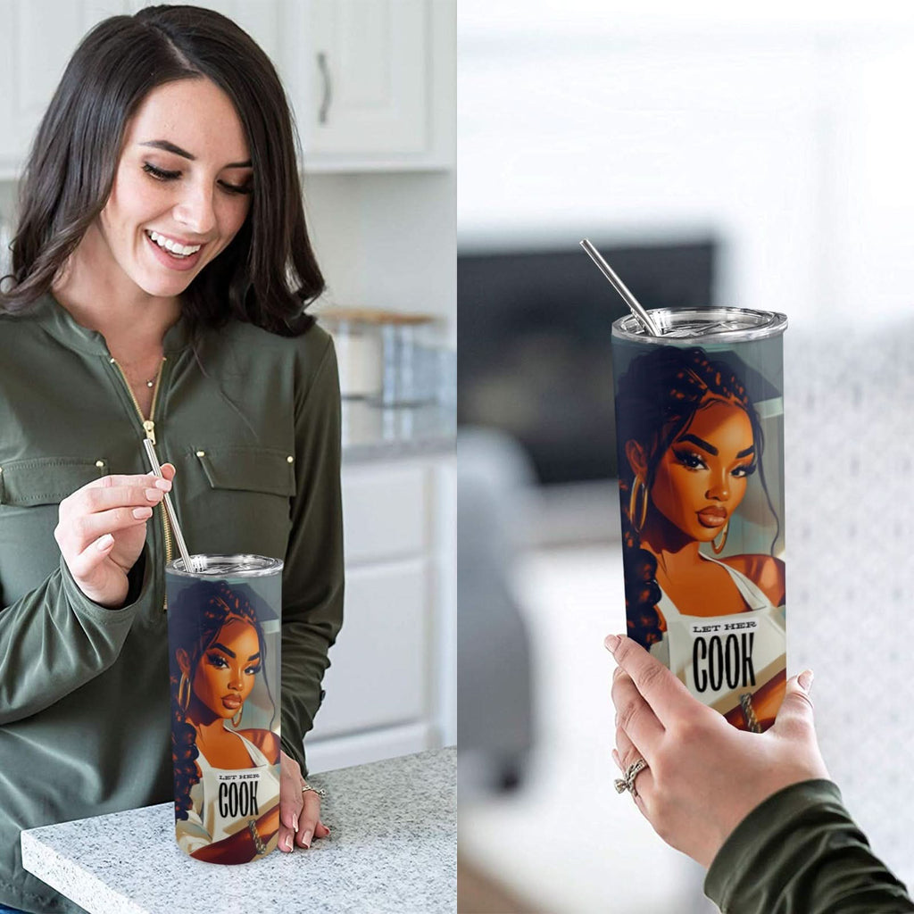 LET HER COOK Skinny Tumbler 20oz Tall Skinny Tumbler with Lid and Straw