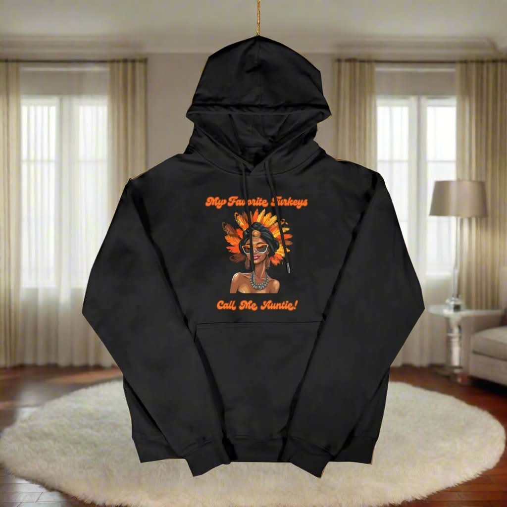Celebrate the holidays in style with the My Favorite Turkeys Call Me Auntie Hoodie. This cozy, festive hoodie is perfect for family dinners and making memories with loved ones.